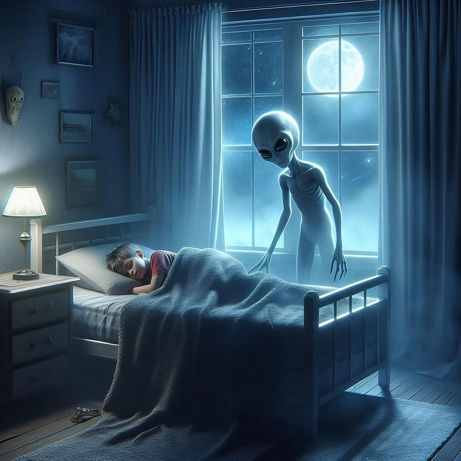 Then—silence. A presence filled his room. Three luminous beings emerged from nothing, neither shadow nor substance, yet undeniably real. Fear rose within him, only to be replaced by an overwhelming calm.